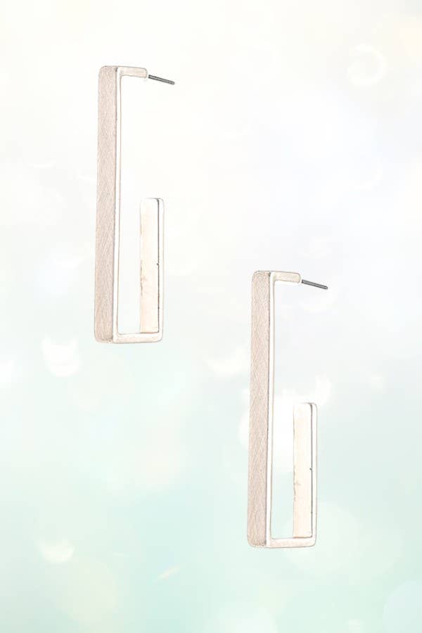 Rectangle Semi Hoop Earring- Silver