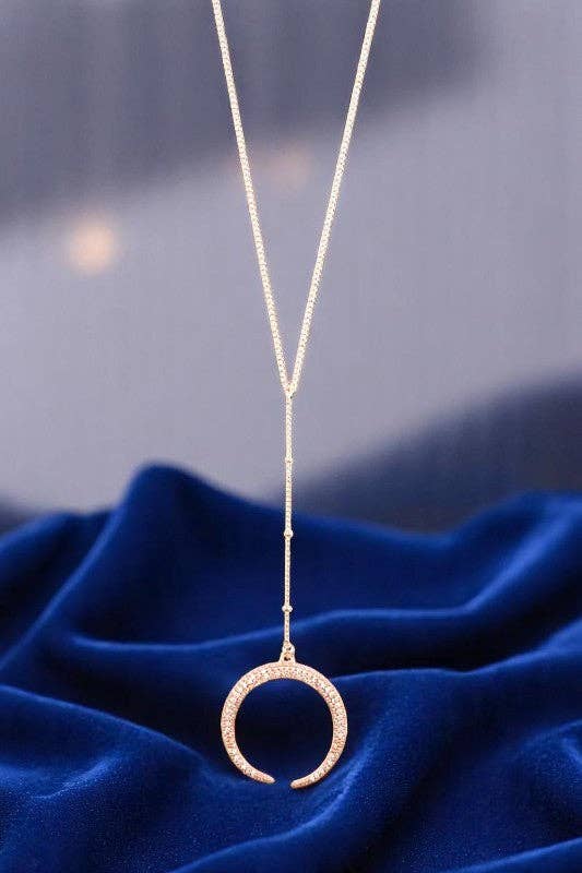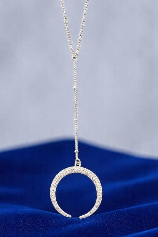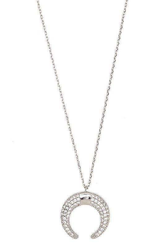 Crystal Curved Horned Drop Necklace- Silver