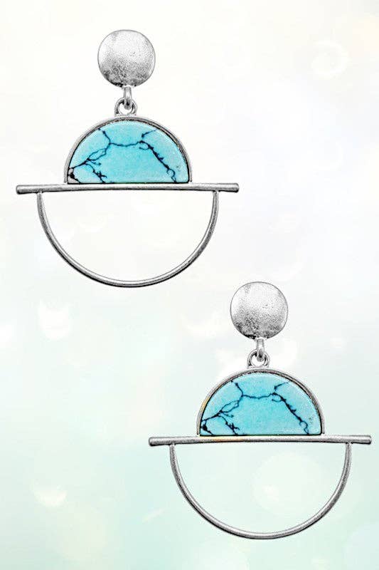 Half Circle Dangle Earring - Silver/Turquoise