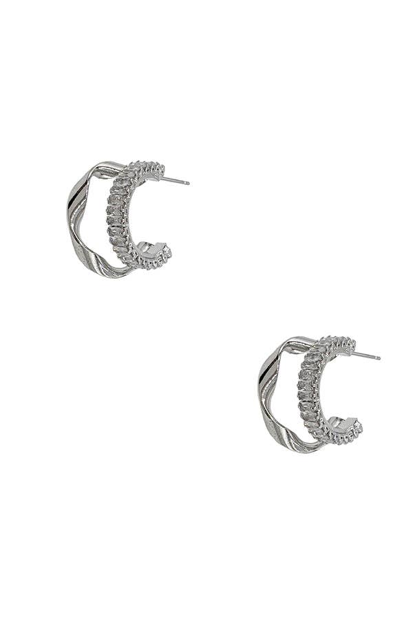 Twist Double Hoop Earring- Silver