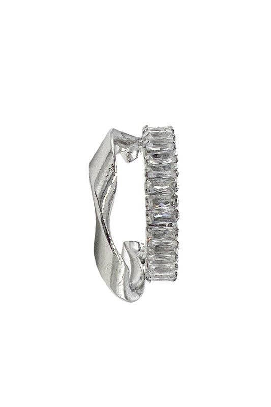 Crystal Curved Line Earring- SIlver