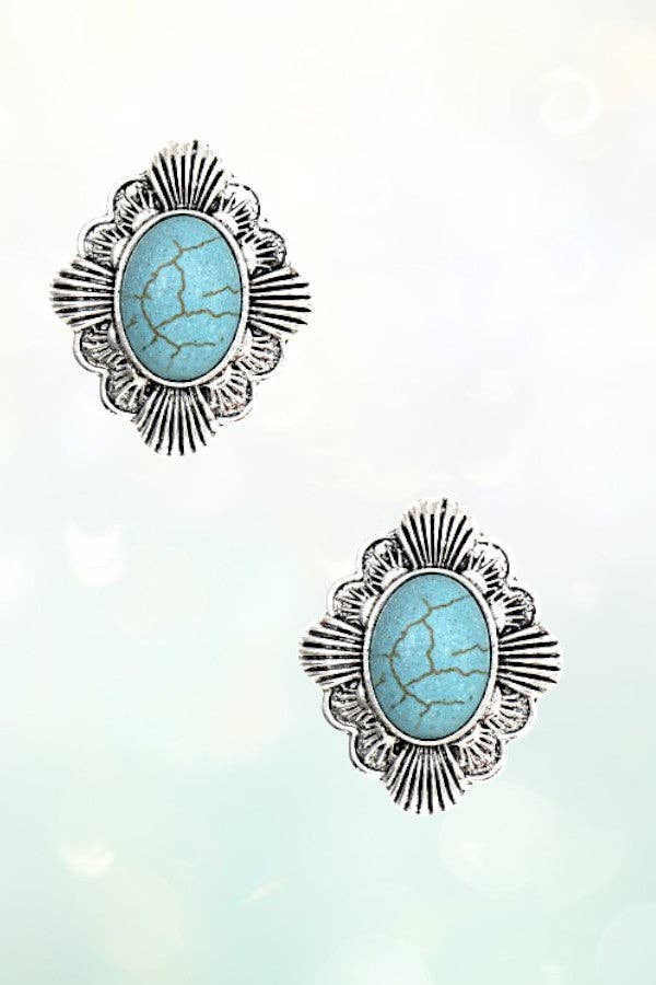 Turquoise Concho Diamond Post Earring-