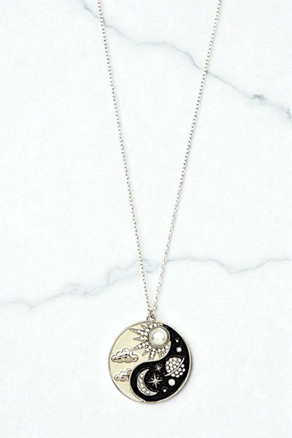 Sun Moon Long Necklace- Silver