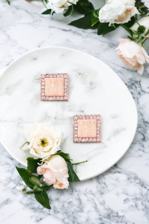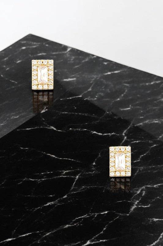 Crystal Square Earring- Gold-