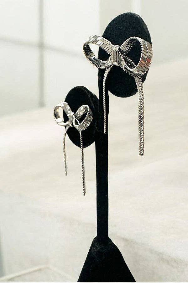 Ribbon Earrings- Silver-