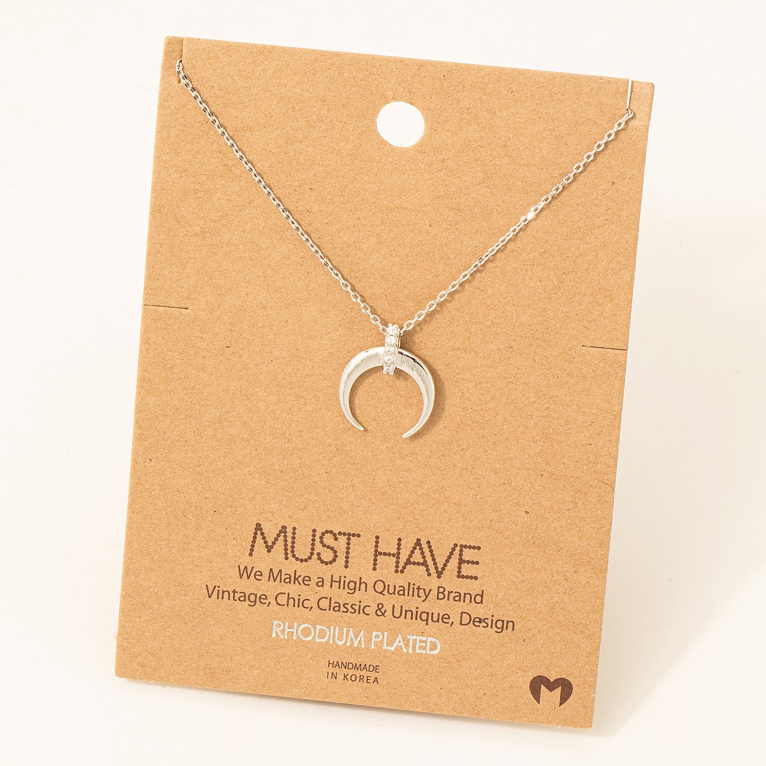 Mini Crescent Horn Necklace- Silver