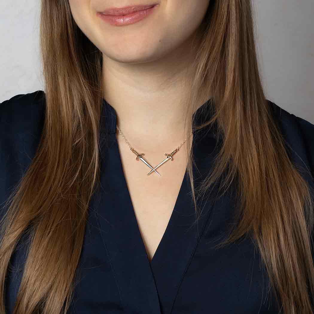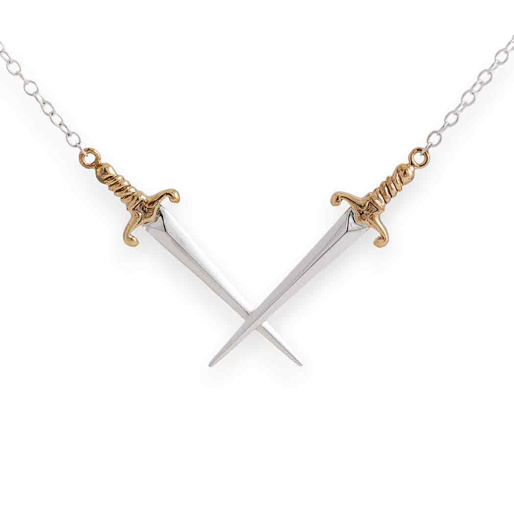 Mixed Metal Crossed Swords Festoon Necklace