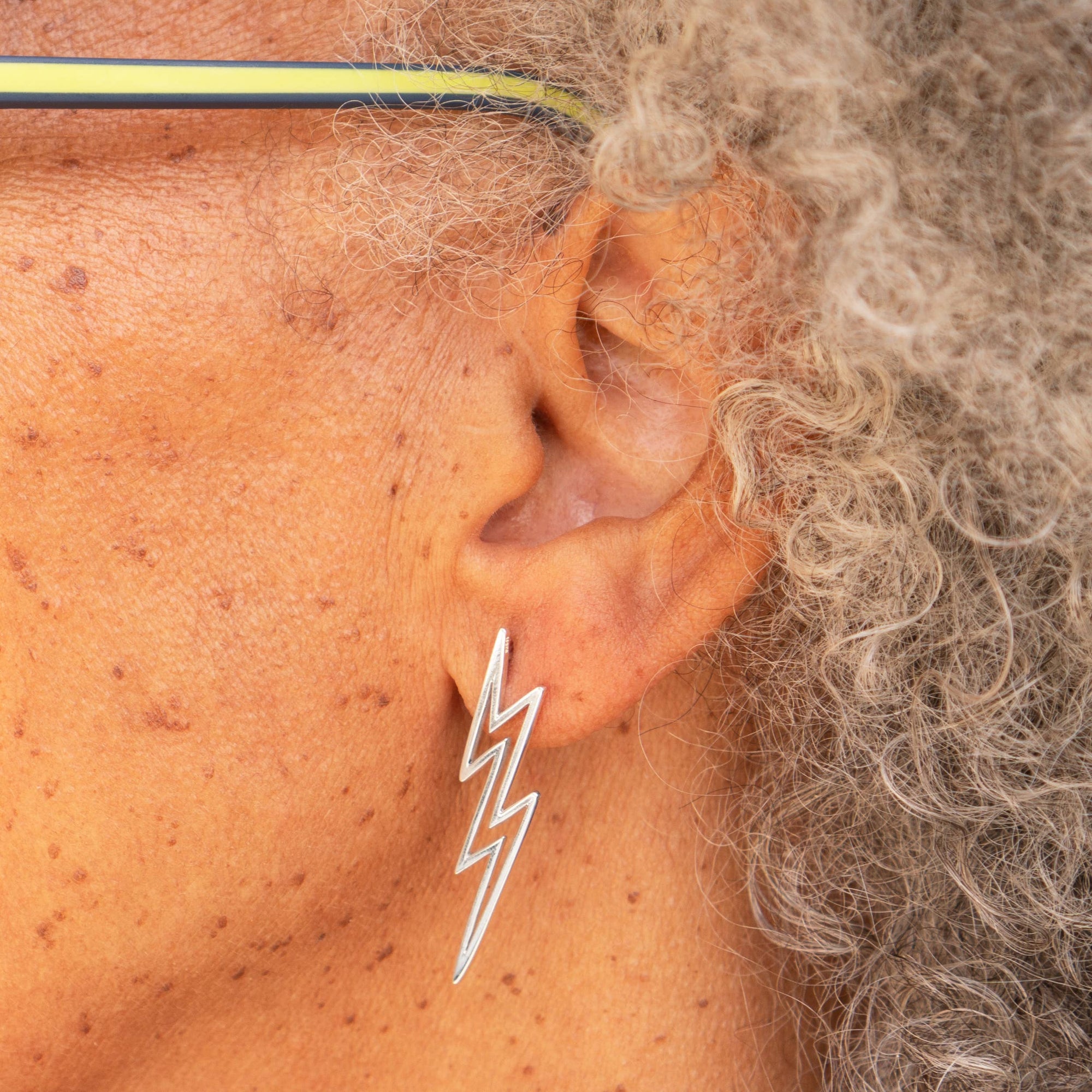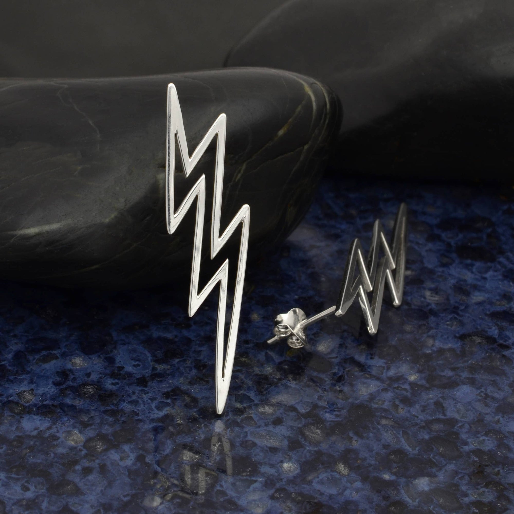 Silver Large Openwork Lightning Bolt Post Earrings 40x10mm