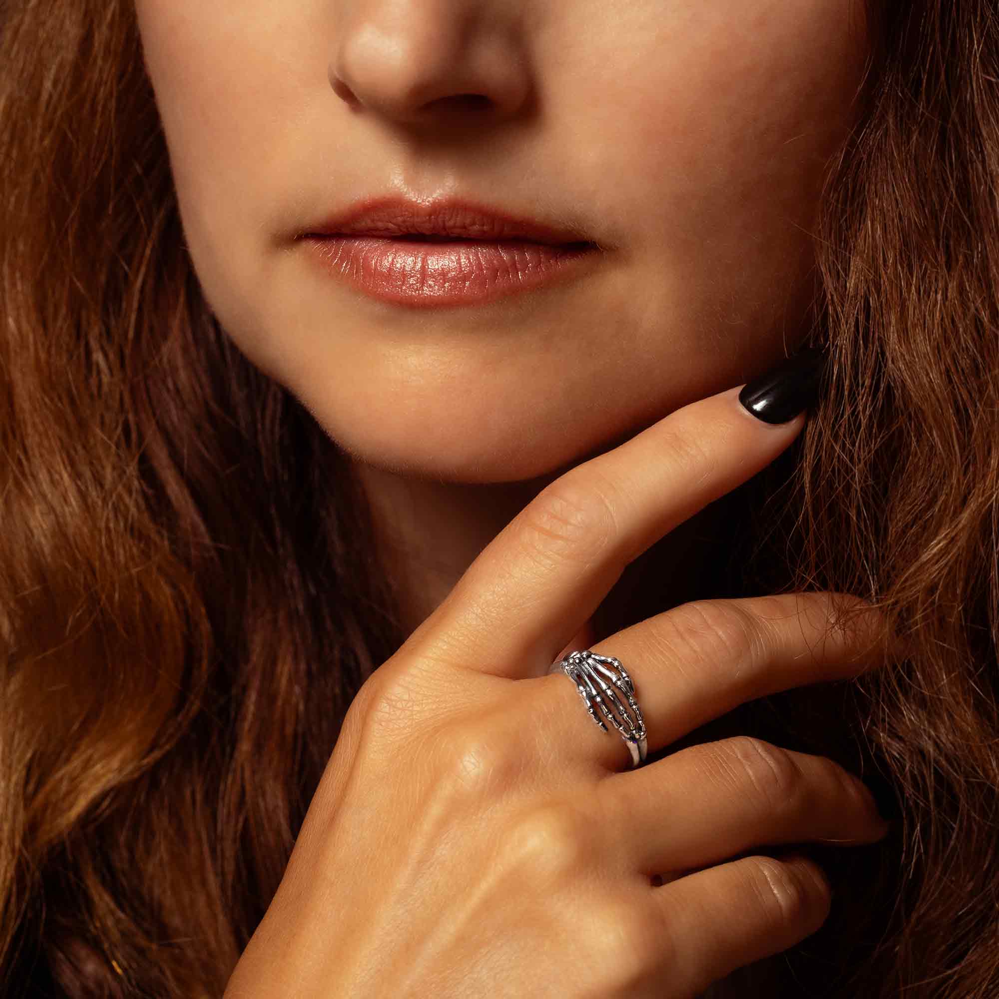 Sterling Silver Skeleton Hand Ring: 8