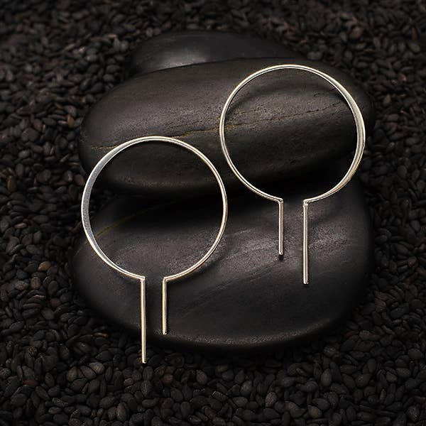 Sterling Silver Bulb Earring with Vertical Bars 40x26mm