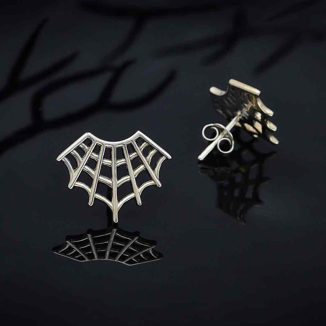 Sterling Silver Spider Web Post Earrings 14x17mm