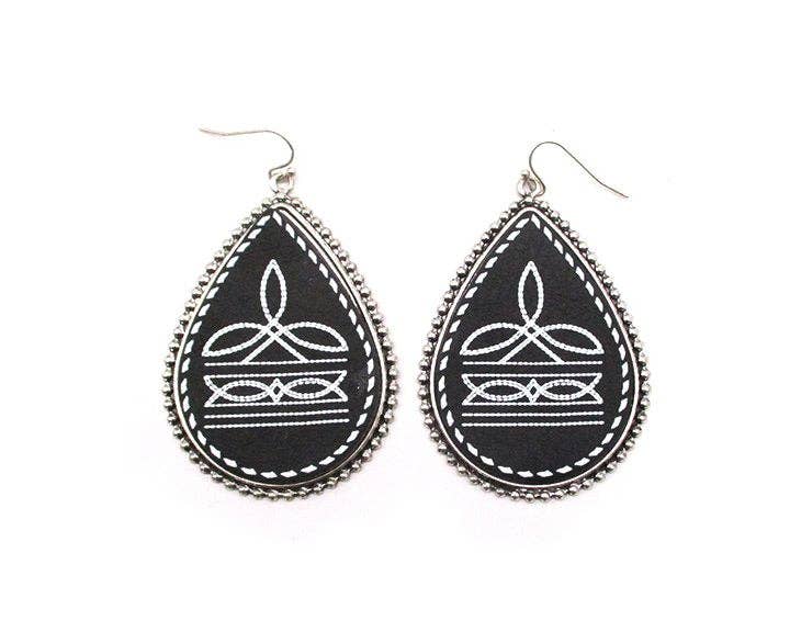 Western Boot Stitch Teardrop Earring